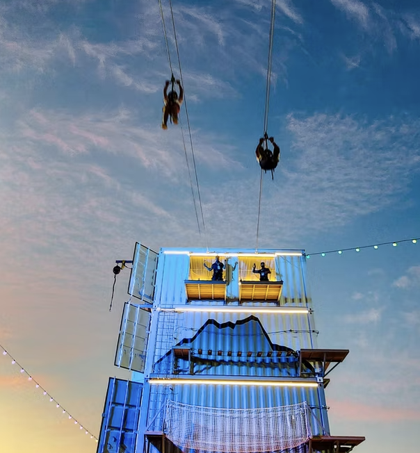 On the adventure side, we design and build custom attractions — from ziplines and via ferratas to free-fall systems — merging excitement with rigorous safety standards.