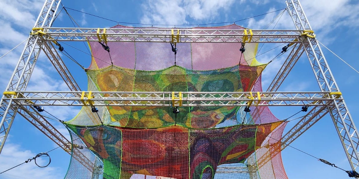 This vibrant multi-level crochet net installation is designed to spark joy and imagination. Handcrafted using durable, child-safe materials, it features nets, tunnels, swings, and slides to create a colourful, immersive play space that encourages climbing, exploration, and sensory discovery. Whether featured at a festival, retail activation, or public venue, the structure captivates children and families alike — offering a visually striking and unforgettable experience. From initial scoping to on-site coordination, Elevate provides end-to-end support to ensure a seamless and successful installation.